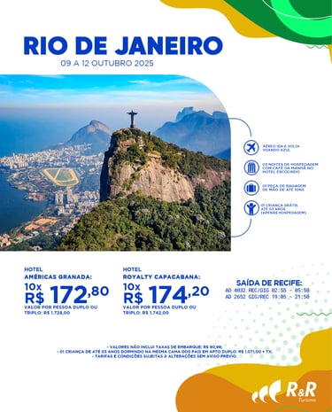 A R&R Turismo nasceu do desejo de transformar o planejamento de viagens em algo leve, seguro e prazeroso. Desde 2012, ajudamos centenas de pessoas a realizarem o sonho de viajar com tranquilidade, sem estresse, sem surpresas desagradáveis, e com a certeza de que tudo foi pensado com cuidado e profissionalismo.