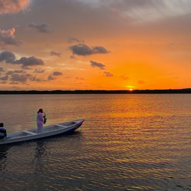 Entardecer na Praia do Jacaré Encante-se com um dos pôres do sol mais famosos do Brasil, ao som do clássico Bolero de Ravel tocado ao vivo no sax — uma experiência que emociona!